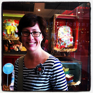 Also a huge Cath fan, she had to have a little pose outside the shop. I love how she's sporting a Claire Mackaness brooch in the latest nautical colours.